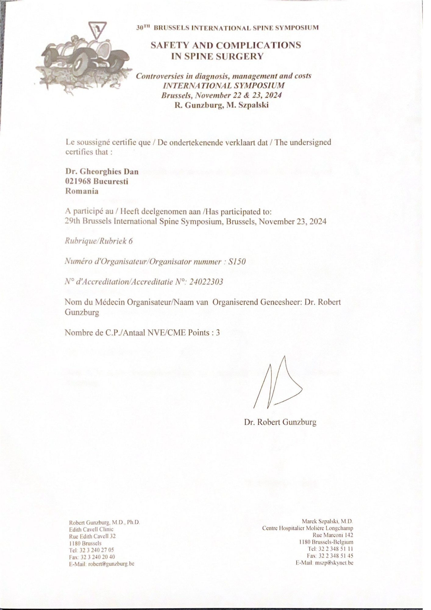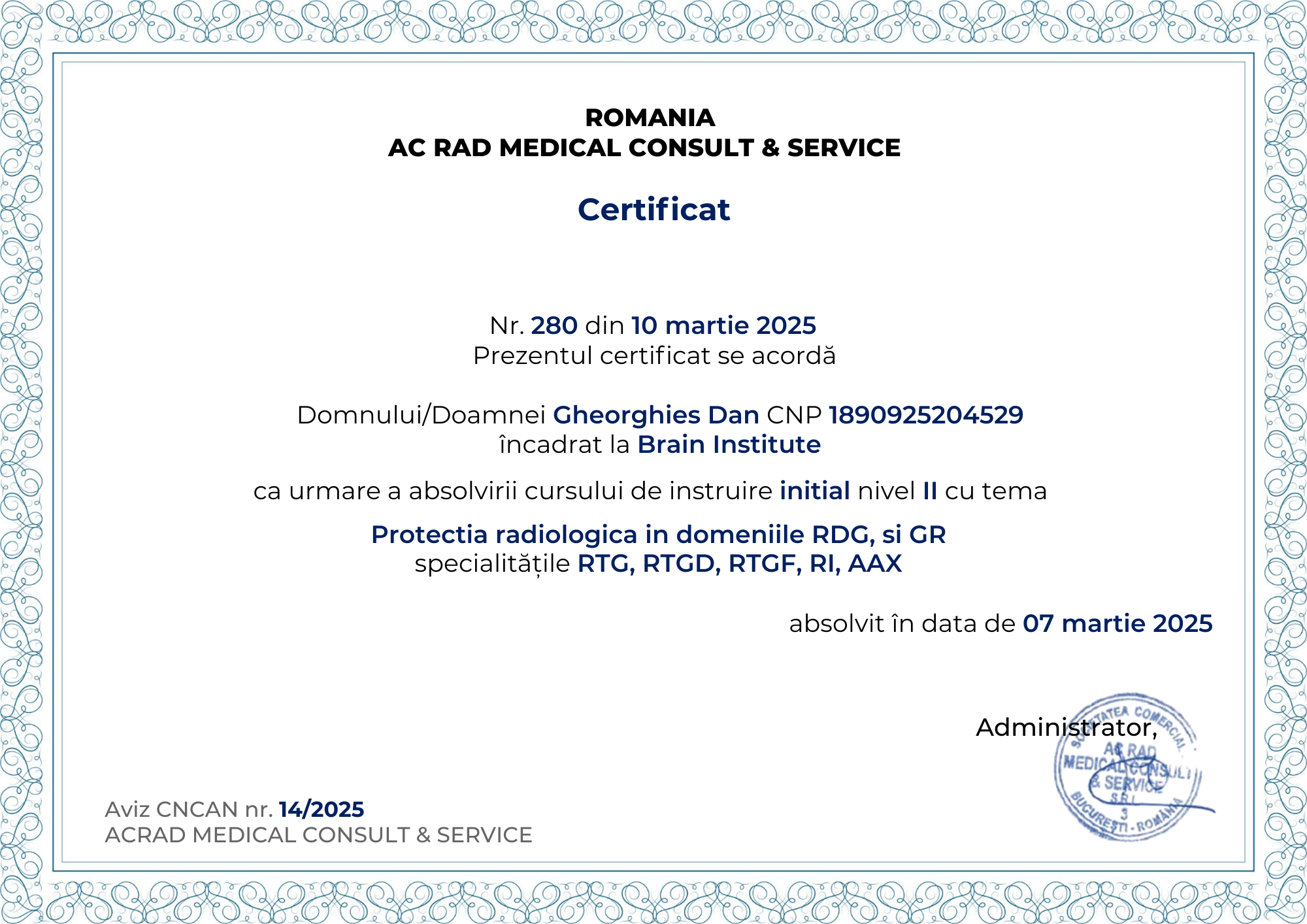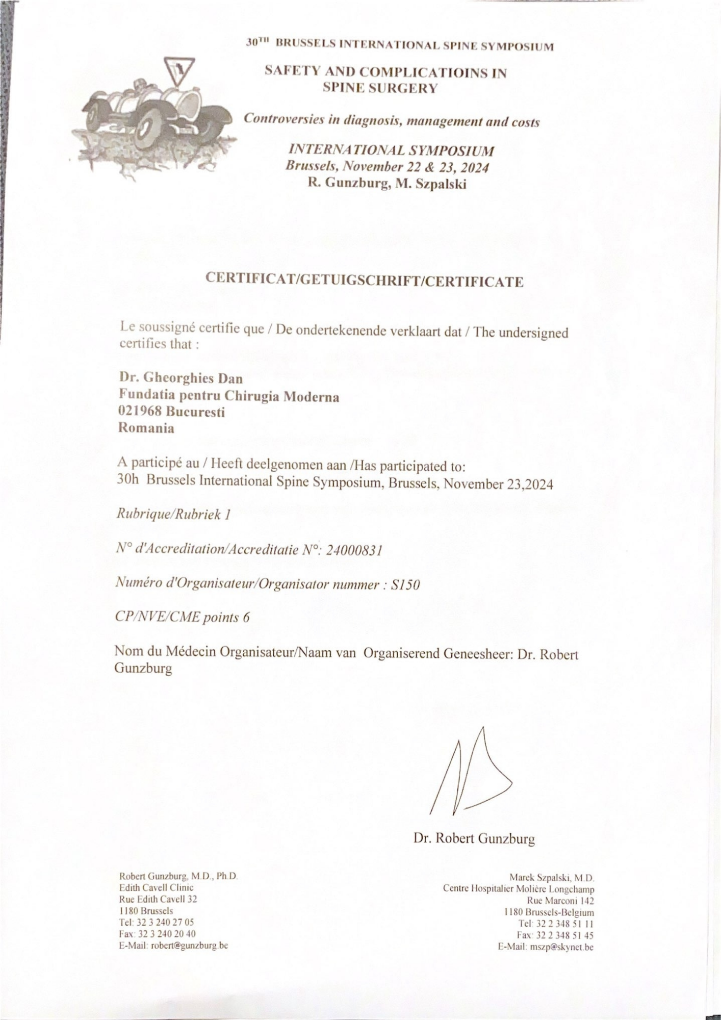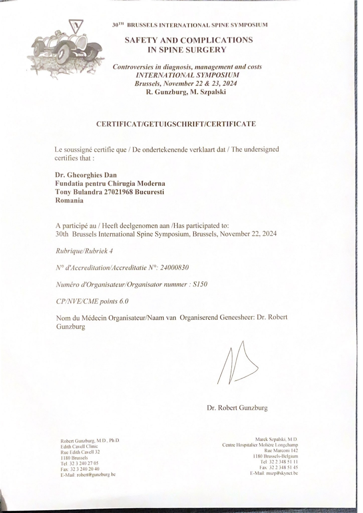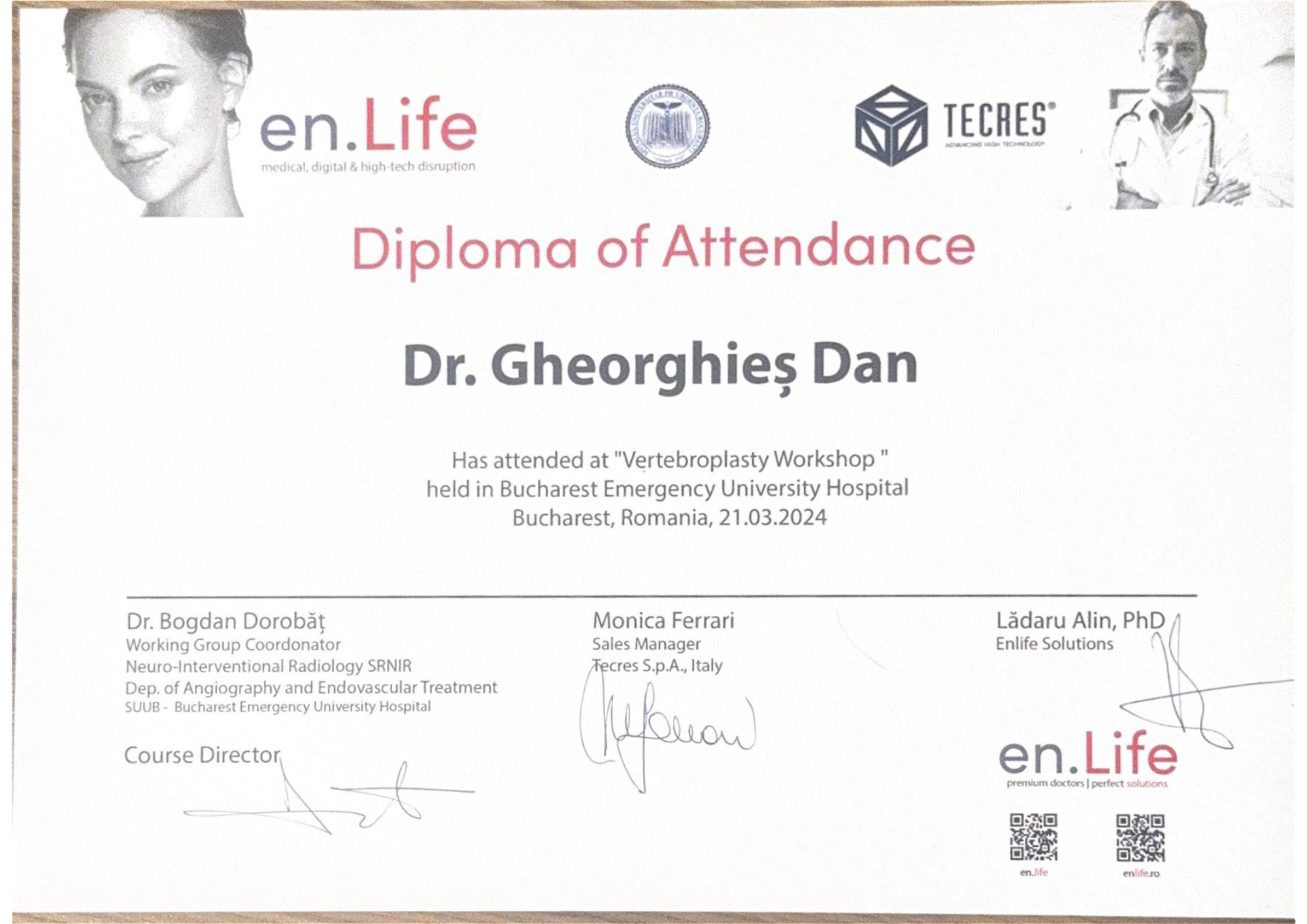 Cursuri și certificări internaționaleParticipare la workshop-uri, hands-on courses și conferințe axate pe tehnici moderne de fixare spinală, navigație intraoperatorie și chirurgie ghidată imagistic.